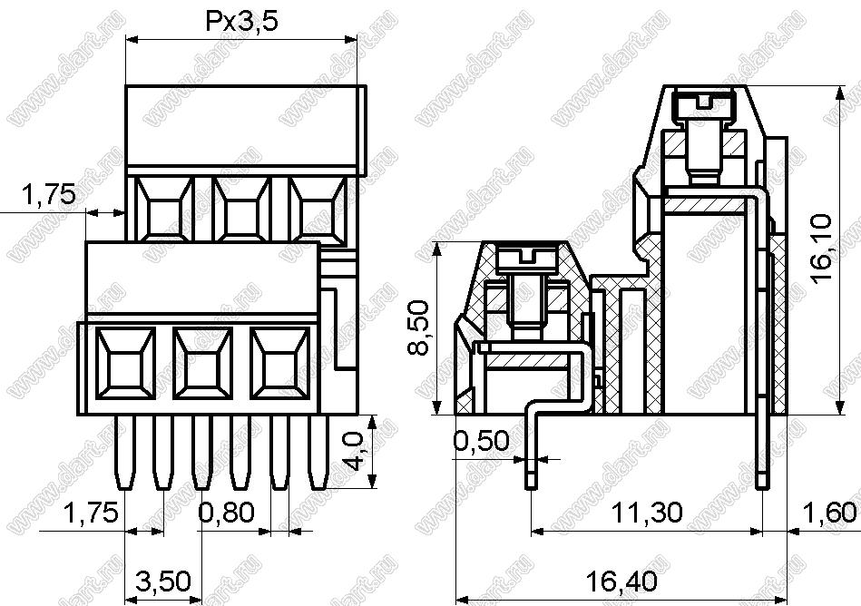 Каталог > Электронные компоненты, радиодетали > Клеммники (колодки клеммные) > Клеммники винтовые для монтажа в отверстия печатных плат > Винтовые клеммники (шаг 3,50 мм) > KF128B-3.5 серия > KF128B-3.5-02P-14