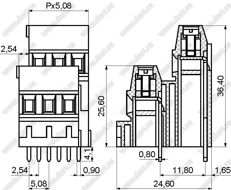 Каталог > Электронные компоненты, радиодетали > Клеммники (колодки клеммные) > Клеммники винтовые для монтажа в отверстия печатных плат > Винтовые клеммники (шаг 5,08 мм) > KF128BB-5.08 серия > KF128BB-5.08-02P-14