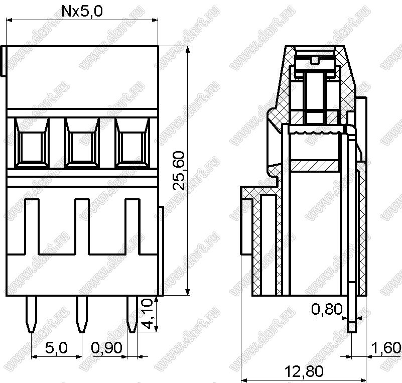 Каталог > Электронные компоненты, радиодетали > Клеммники (колодки клеммные) > Клеммники винтовые для монтажа в отверстия печатных плат > Винтовые клеммники (шаг 5,0 мм) > KF128H-5.0 серия > KF128H-5.0-03P-14