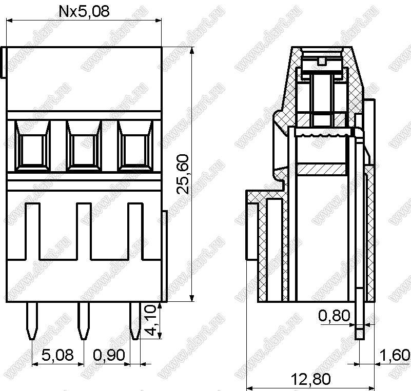 Каталог > Электронные компоненты, радиодетали > Клеммники (колодки клеммные) > Клеммники винтовые для монтажа в отверстия печатных плат > Винтовые клеммники (шаг 5,08 мм) > KF128H-5.08 серия > KF128H-5.08-03P-14