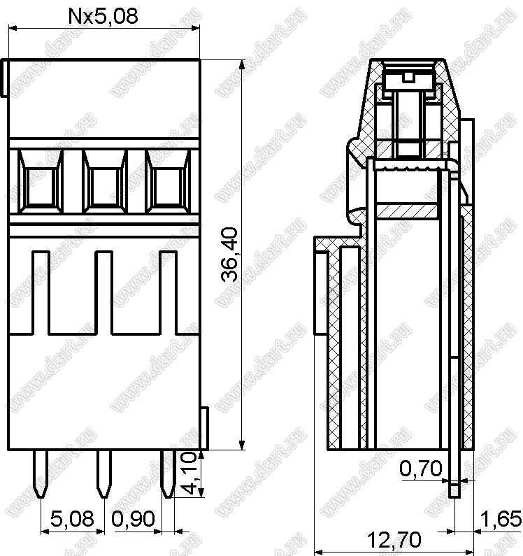 Каталог > Электронные компоненты, радиодетали > Клеммники (колодки клеммные) > Клеммники винтовые для монтажа в отверстия печатных плат > Винтовые клеммники (шаг 5,08 мм) > KF128HH-5.08 серия > KF128HH-5.08-02P-14