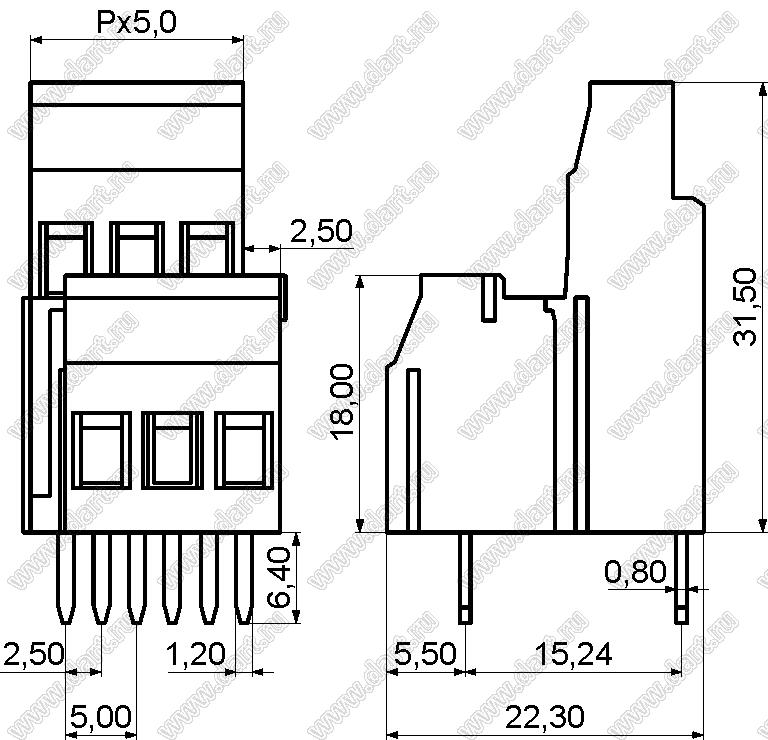 Каталог > Электронные компоненты, радиодетали > Клеммники (колодки клеммные) > Клеммники винтовые для монтажа в отверстия печатных плат > Винтовые клеммники (шаг 5,0 мм) > KF129A-5.0 серия > KF129A-5.0-02P-14