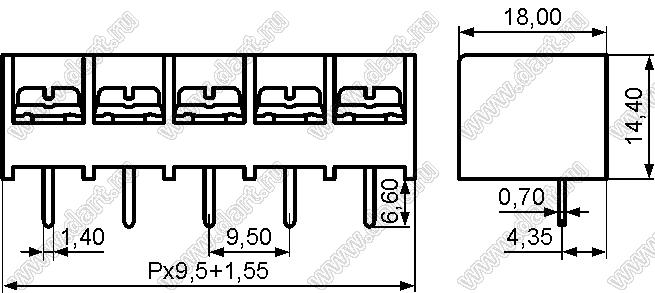 Каталог > Электронные компоненты, радиодетали > Клеммники (колодки клеммные) > Клеммники барьерные > Барьерные клеммники (шаг 9,50 мм) > HB9500 серия > HB9500-9.5-03P-13