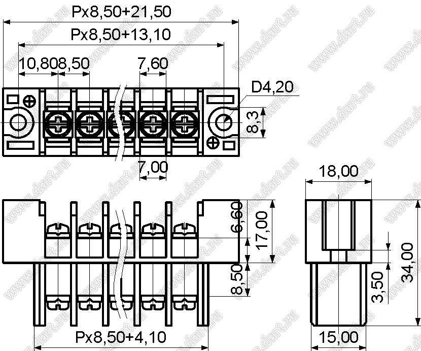 Каталог > Электронные компоненты, радиодетали > Клеммники (колодки клеммные) > Клеммники барьерные > Барьерные клеммники (шаг 8,50 мм) > KF17-8.5 серия > KF17-8.5-09P-13