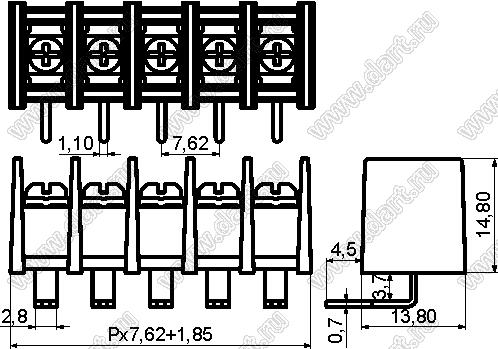 Каталог > Электронные компоненты, радиодетали > Клеммники (колодки клеммные) > Клеммники барьерные > Барьерные клеммники (шаг 7,62 мм) > KF25R (DG25R-B) серия > KF25R-7.62-16P-13 (DG25R-B-16P-13)