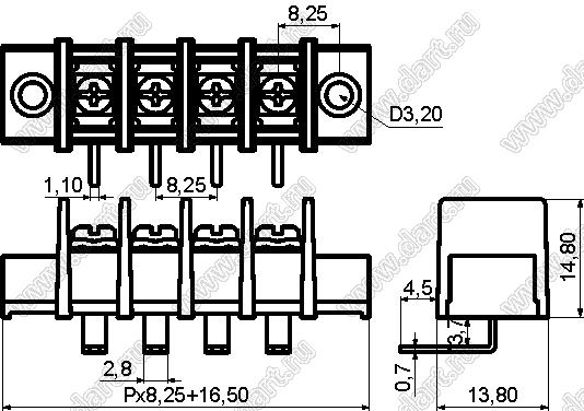 Каталог > Электронные компоненты, радиодетали > Клеммники (колодки клеммные) > Клеммники барьерные > Барьерные клеммники (шаг 8,25 мм) > KF35RM (DG35R-A) серия > KF35RM-8.25-08P-13 (DG35R-A-08P-13)