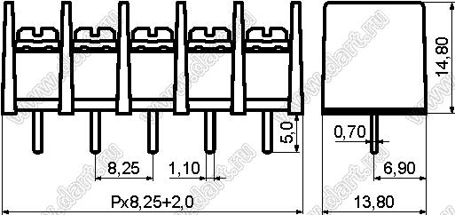 Каталог > Электронные компоненты, радиодетали > Клеммники (колодки клеммные) > Клеммники барьерные > Барьерные клеммники (шаг 8,25 мм) > KF35C (DG35C-B) серия > KF35C-8,25-05P-13 (DG35C-B-05P-13)