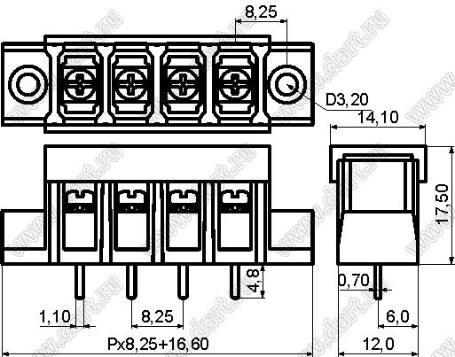 Каталог > Электронные компоненты, радиодетали > Клеммники (колодки клеммные) > Клеммники барьерные > Барьерные клеммники (шаг 8,25 мм) > KF38CM (DG38C-A) серия > KF38CM-8.25-24P-13 (DG38C-A-24P-13)