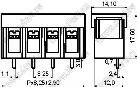 Каталог > Электронные компоненты, радиодетали > Клеммники (колодки клеммные) > Клеммники барьерные > Барьерные клеммники (шаг 8,25 мм) > KF38S (DG38S-B) серия > KF38S-8.25-12P-13 (DG38S-B-12P-13)