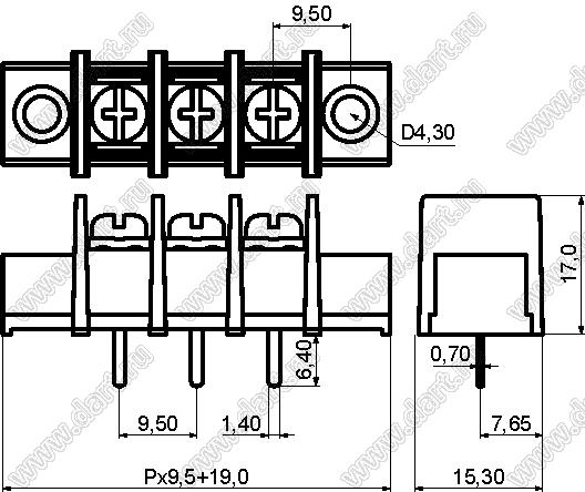 Каталог > Электронные компоненты, радиодетали > Клеммники (колодки клеммные) > Клеммники барьерные > Барьерные клеммники (шаг 9,50 мм) > KF45CM (DG45C-A) серия > KF45CM-9.5-14P-13 (DG45C-A-14P-13)