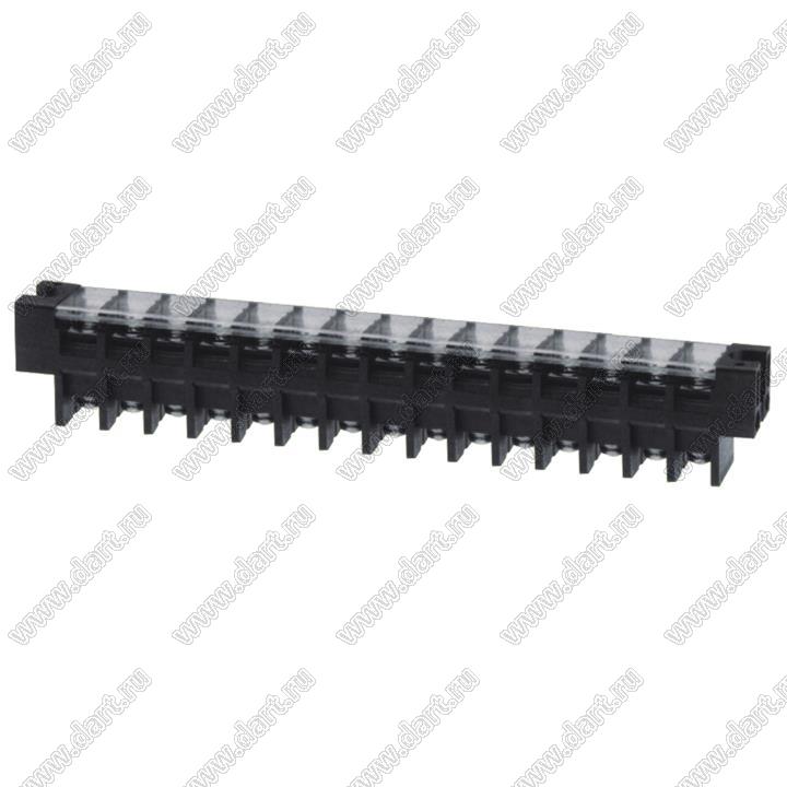 Клеммник барьерный, двухсторонние зажимы, корпус с монтажными ушами, с крышкой на защелках; шаг=16мм; I max=65/76А (стандарт UL/ICT); U=600/1000В (стандарт UL/ICT); 15-конт.