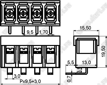Каталог > Электронные компоненты, радиодетали > Клеммники (колодки клеммные) > Клеммники барьерные > Барьерные клеммники (шаг 9,50 мм) > KF48R (DG48R-B) серия > KF48R-9.5-19P-13 (DG48R-B-19P-13)