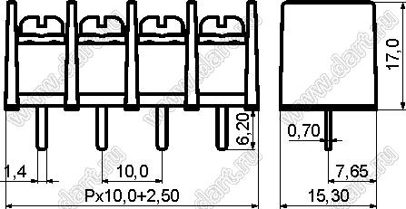 Каталог > Электронные компоненты, радиодетали > Клеммники (колодки клеммные) > Клеммники барьерные > Барьерные клеммники (шаг 10,0 мм) > KF55C (DG55C) серия > KF55C-10.0-07P-13 (DG55C-B-07P-13)