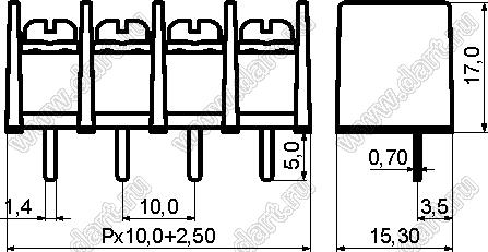 Каталог > Электронные компоненты, радиодетали > Клеммники (колодки клеммные) > Клеммники барьерные > Барьерные клеммники (шаг 10,0 мм) > KF55S (DG55S-B) серия > KF55S-10.0-17P-13 (DG55S-B-17P-13)