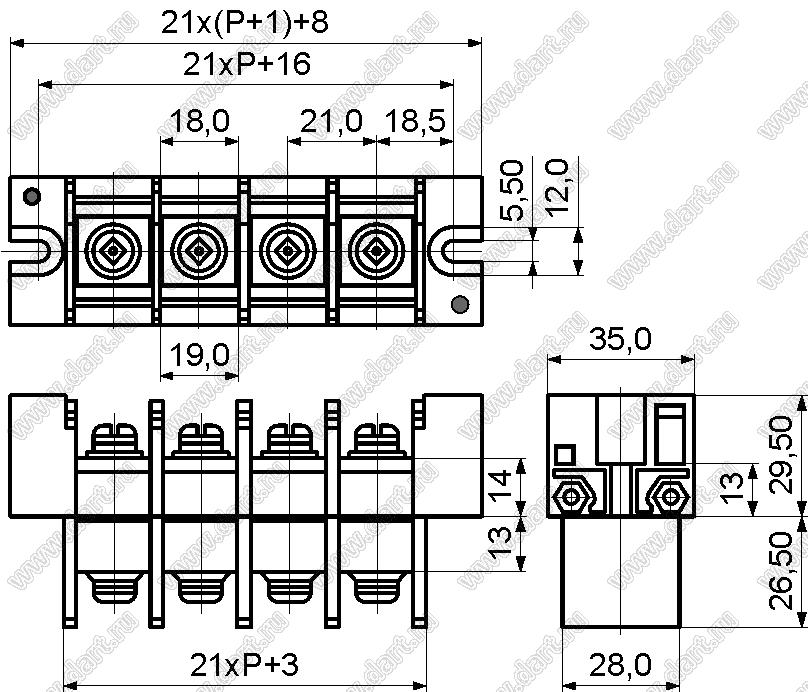 Каталог > Электронные компоненты, радиодетали > Клеммники (колодки клеммные) > Клеммники барьерные > Барьерные клеммники (шаг 21,0 мм) > KF57-21.0 серия > KF57-21.0-12P-13