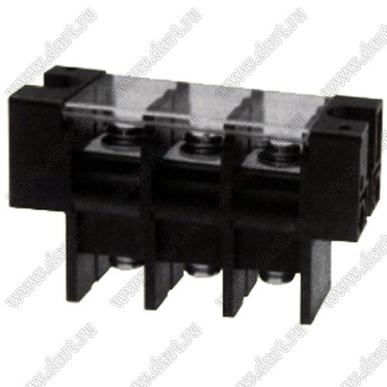 Клеммник барьерный, двухсторонние зажимы, корпус с монтажными ушами, с крышкой на защелках; шаг=21мм; I max=115/125А (стандарт UL/ICT); U=600/1000В (стандарт UL/ICT); 3-конт.