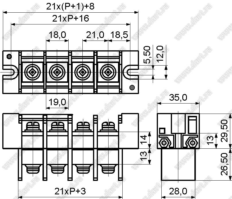 Шаг выводов шаг: 21 мм