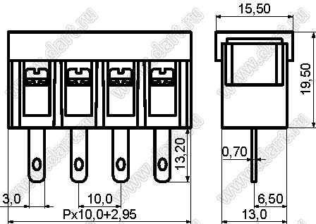 Каталог > Электронные компоненты, радиодетали > Клеммники (колодки клеммные) > Клеммники барьерные > Барьерные клеммники (шаг 10,0 мм) > KF58H серия > KF58H-10.0-06P-13