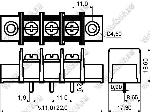 Каталог > Электронные компоненты, радиодетали > Клеммники (колодки клеммные) > Клеммники барьерные > Барьерные клеммники (шаг 11,0 мм) > KF65CM (DG65C-A) серия > KF65CM-11.0-10P-13 (DG65C-A-10P-13)