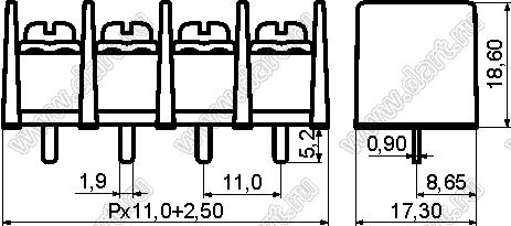 Каталог > Электронные компоненты, радиодетали > Клеммники (колодки клеммные) > Клеммники барьерные > Барьерные клеммники (шаг 11,0 мм) > KF65C (DG65C-B) серия > KF65C-11.0-17P-13 (DG65C-B-17P-13)