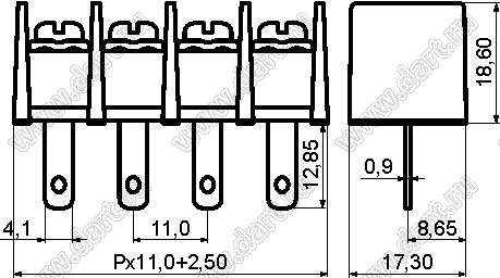 Каталог > Электронные компоненты, радиодетали > Клеммники (колодки клеммные) > Клеммники барьерные > Барьерные клеммники (шаг 11,0 мм) > KF65HM (DG65H-A) серия > KF65HM-11.0-18P-13 (DG65H-A-18P-13)