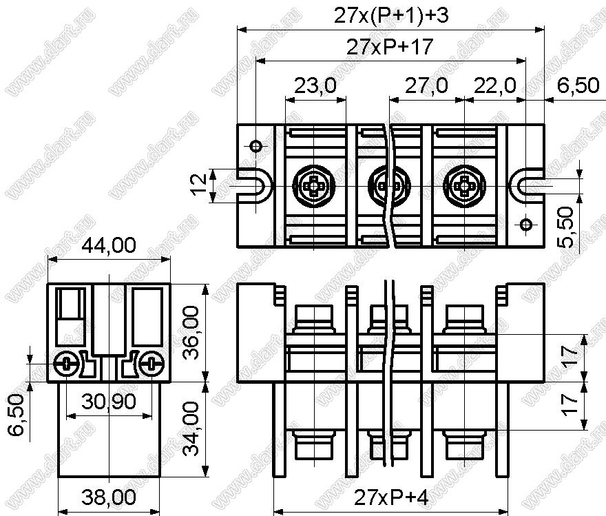 Каталог > Электронные компоненты, радиодетали > Клеммники (колодки клеммные) > Клеммники барьерные > Барьерные клеммники (шаг 27,0 мм) > KF67-27.0 серия > KF67-27.0-08P-13