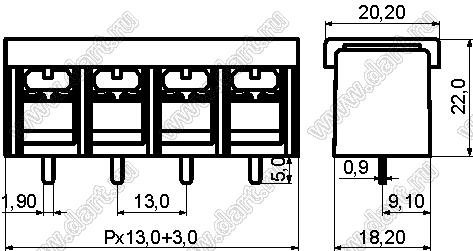Каталог > Электронные компоненты, радиодетали > Клеммники (колодки клеммные) > Клеммники барьерные > Барьерные клеммники (шаг 13,0 мм) > KF78C (DG78C-B) серия > KF78C-13.0-20P-13 (DG78C-B-20P-13)