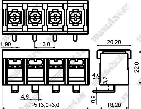 Каталог > Электронные компоненты, радиодетали > Клеммники (колодки клеммные) > Клеммники барьерные > Барьерные клеммники (шаг 13,0 мм) > KF78R (DG78R-B) серия > KF78R-13.0-12P-13 (DG78R-B-12P-13)