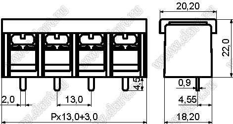 Каталог > Электронные компоненты, радиодетали > Клеммники (колодки клеммные) > Клеммники барьерные > Барьерные клеммники (шаг 13,0 мм) > KF78S серия > KF78S-13.0-07P-13