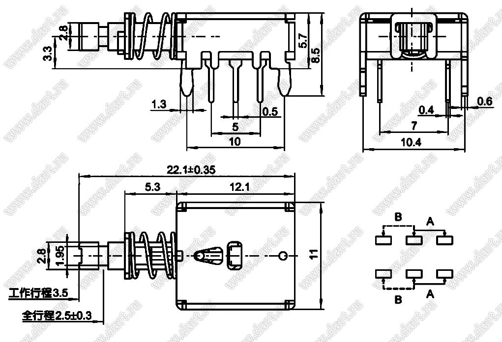 Каталог > Электронные компоненты, радиодетали > Переключатели, кнопки > Переключатели кнопочные (PUSH, кнопки) > PS серия > PS-22 (2P2T) > PS-22F10L