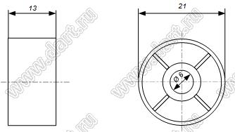 Каталог > Фурнитура для электронных устройств > Ручки приборные регулировочные > Ручки настройки > Ручки регулировочные металлические > B164 серия > B164-21-17-6D-W-B2 (WA 21x17)