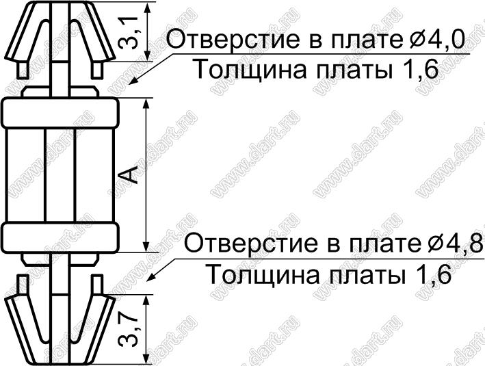 Серия фиксаторов плат нейлоновых предназначена для крепления печатной платы на постоянном расстоянии от шасси. Диаметр отверстия в плате 4,0 мм, толщина платы 1,6 мм, диаметр отверстия в шасси 4,8 мм, толщина шасси 1,6 мм. Фиксаторы этой серии поставляются со склада в Москве и под заказ с фабрики со сроком производства 2-3 недели, плюс доставка до Москвы. Условия поставки уточняйте у менеджеров.