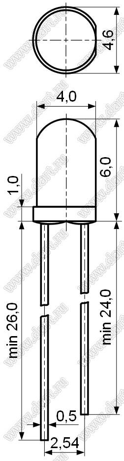 Светодиоды круглые диаметром 4.0x6.0 мм для монтажа в отверстия подходят для приборов, переключателей, подсветки значков и общей индикации состояния. Существует 3 типа светодиодов, выпускаемых по различным технологиям: чипы с технологией GaP предназначены для низких или умеренных требований к светоотдаче, чипы с технологиями AllnGaP и InGaN - для высокой яркости светоотдачи. Выпускаемые цвета: зеленый, красный, желтый, белый, синий и оранжевый. Светодиоды круглые диаметром 4.0x6.0 мм для монтажа в отверстия изготовлены из высококачественной эпоксидной смолы оптического класса, которая обеспечивает великолепную светопередачу при высоких температурах и отличную влагостойкость. Рассеянный, прозрачный цвет и оптический дизайн светодиодов круглых диаметром 4.0x6.0 мм сбалансированы, чтобы обеспечить превосходную светоотдачу. Для повышения гибкости дизайна в каждом цвете круглых 4 мм светодиодов доступно несколько вариантов интенсивности. Светодиоды круглые 4 мм поставляются нами со склада в Москве и под заказ с фабрик. Условия поставки светодиодов круглых 4.0x6.0 мм уточняйте у наших менеджеров.