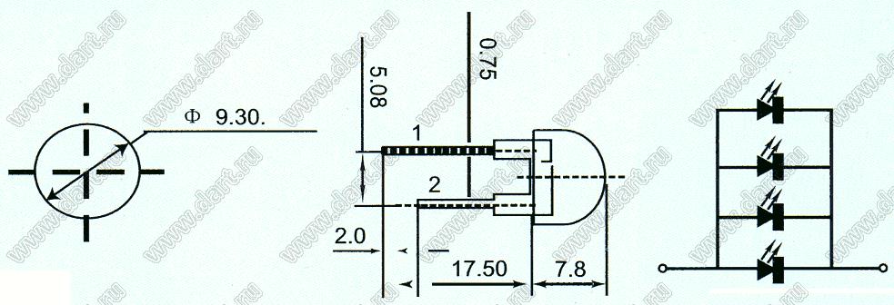 Каталог > Оптоэлектроника и индикация > Светодиоды и изделия на светодиодах > Светодиоды выводные > Светодиоды круглые 9.3x7.8 мм (4-х кристалльные)