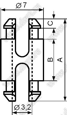 Диаметр отверстия в плате dп: 5,2 мм Диаметр отверстия в шасси d отв.: 5,2 мм Материал: нейлон-66 (UL) Класс огнестойкости: 94V-0/94V-2 Цвет: натуральный |