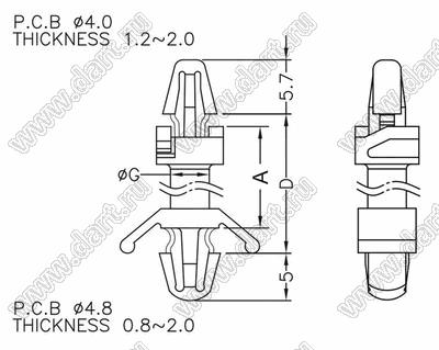 Диаметр отверстия в шасси d отв.: 4,8 мм
