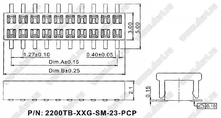 розетки прямые двухрядные (гнезда) на плату для поверхностного (SMD) монтажа с обратным входом и захватом, шаг 1,27x1,27 мм