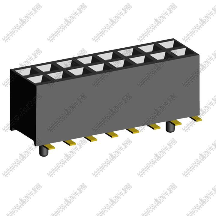 розетки прямые двухрядные (гнезда) для поверхностного (SMD) монтажа с направляющими на плату, шаг 1,27x1,27мм