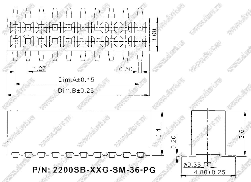 Шаг выводов P: 1,27x1,27 мм