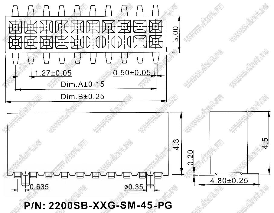 Шаг выводов P: 1,27x1,27 мм