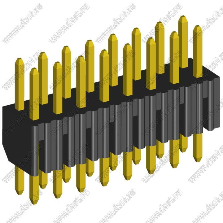 Вилки штыревые открытые прямые двухрядные на плату с увеличенным изолятором для монтажа в отверстия (шаг 2,00 x 2,00 мм)