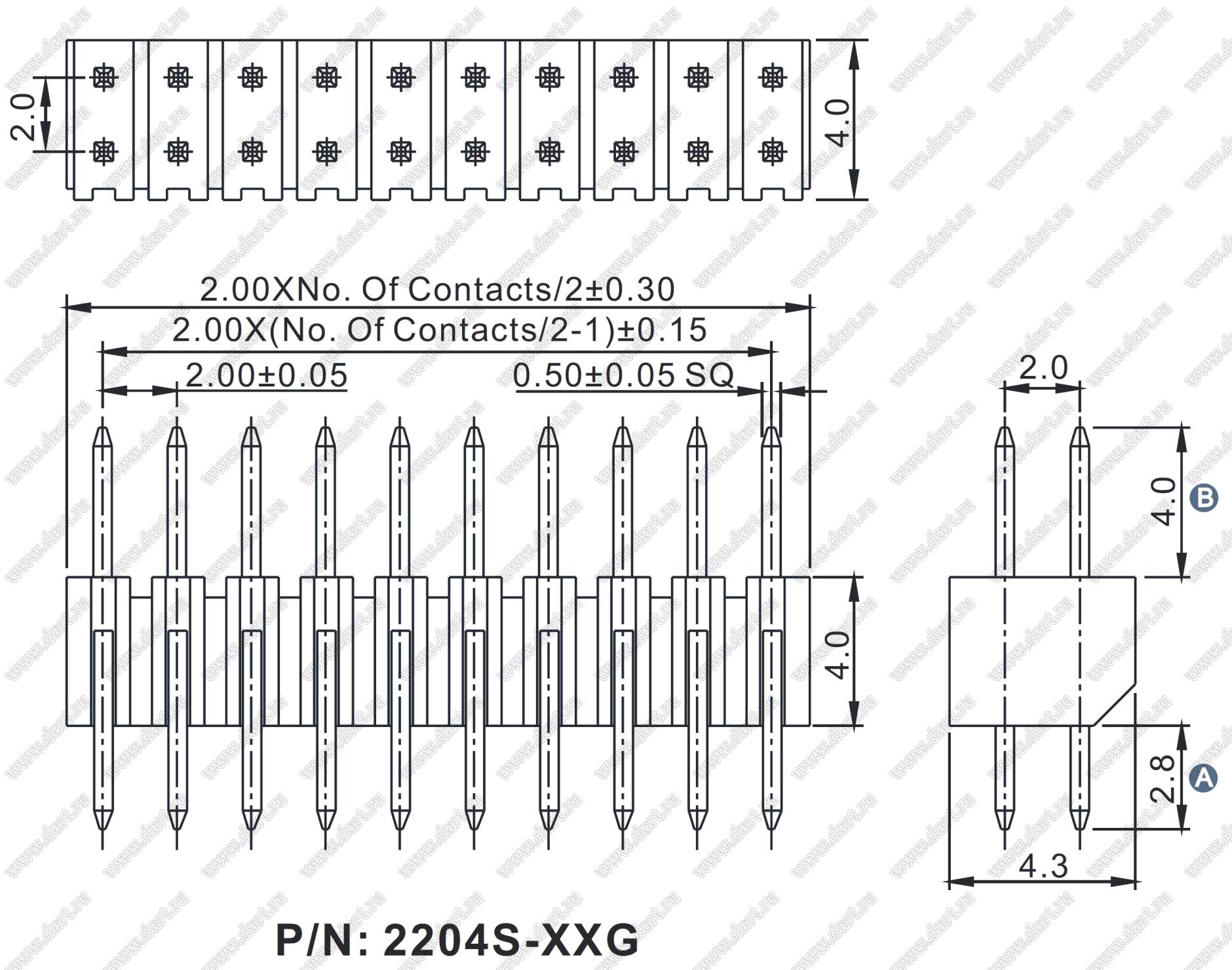 Шаг выводов P: 2.00x2.00 мм