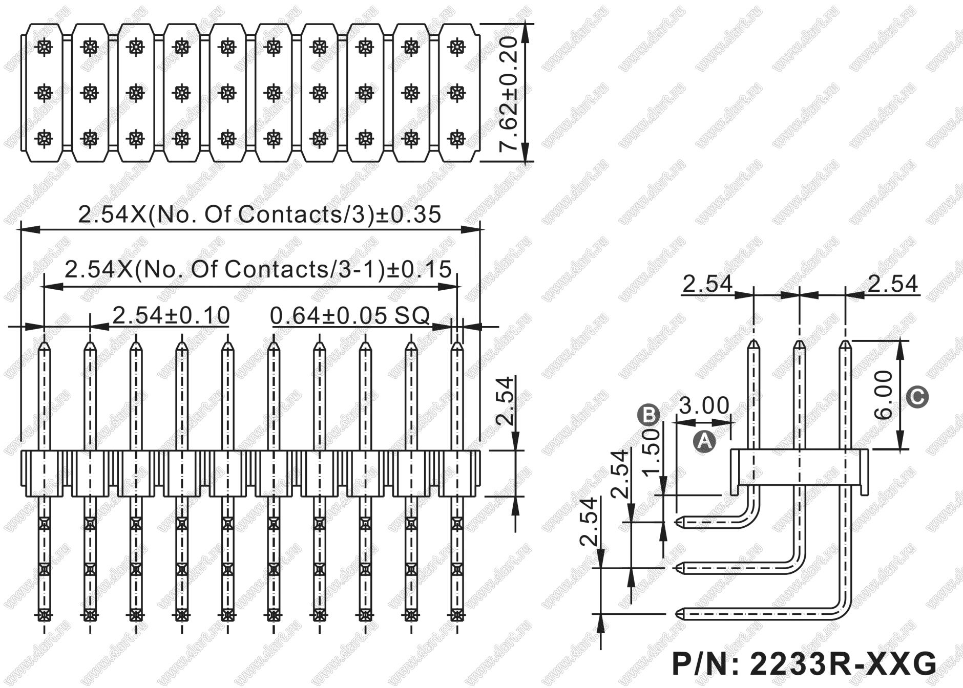 Штыревые вилки данной серии изготавливаются на фабрике в виде линеек 3x40 контактов. Затем они могут быть разрезаны на специальном приспособлении по требованию заказчика на любое количество контактов, кратное трем: 3, 6, 9 и т.д. Стоимость работы по разрезанию лишь незначительно увеличивает цену отдельного контакта, но при этом разрез получается практически идеальный, без сколов по торцам, а заказчик не тратит время на работу, которая легко выполняется машиной.