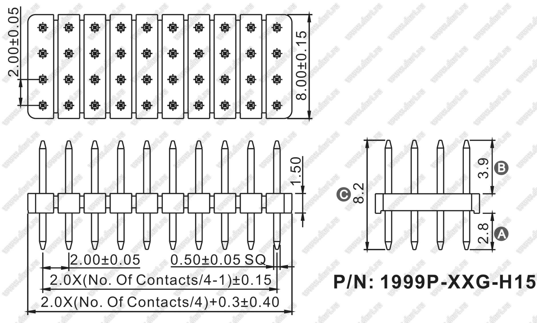 Шаг выводов P: 2.00x2.00x2.00 мм