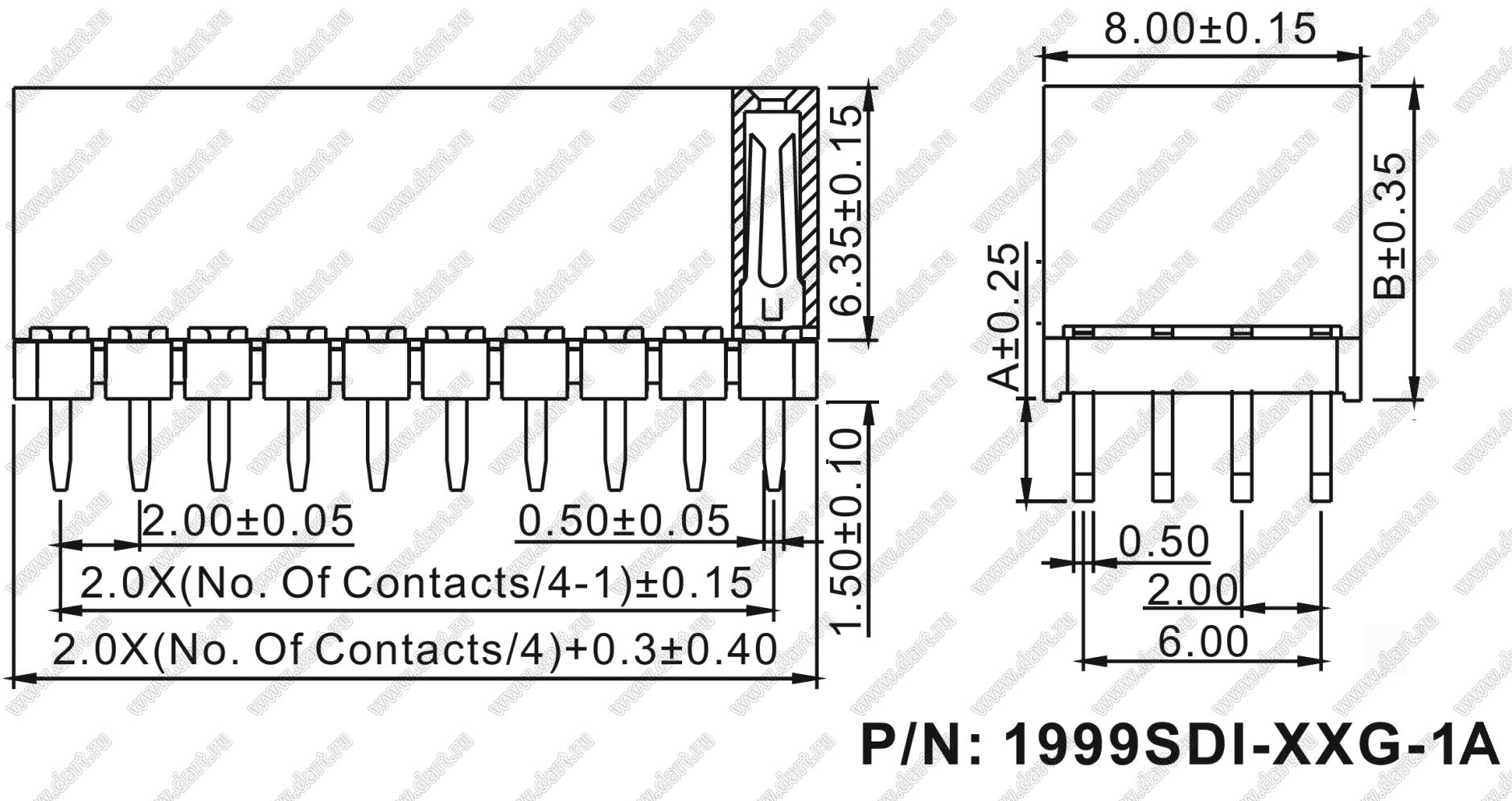 Розетки прямые четырехрядные на плату для монтажа в отверстия (шаг 2,00 x 2,00 мм)