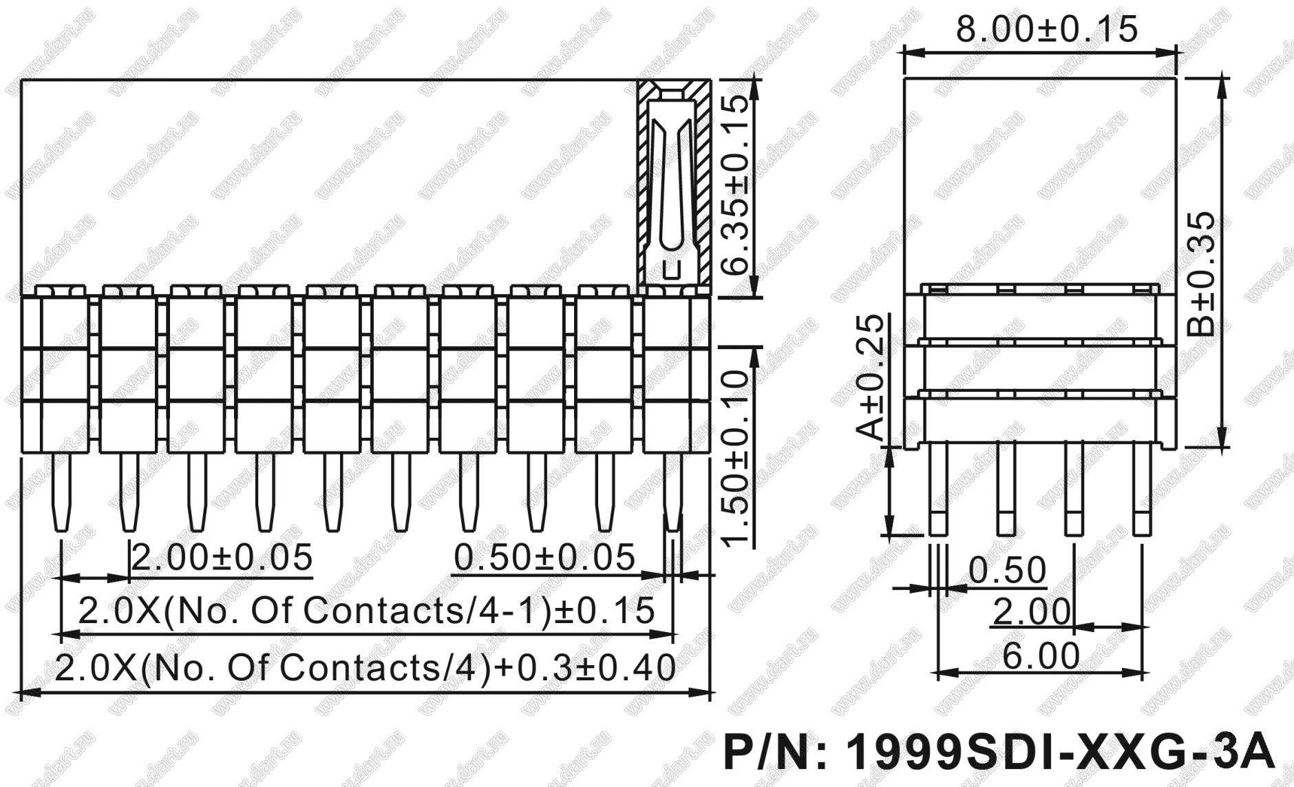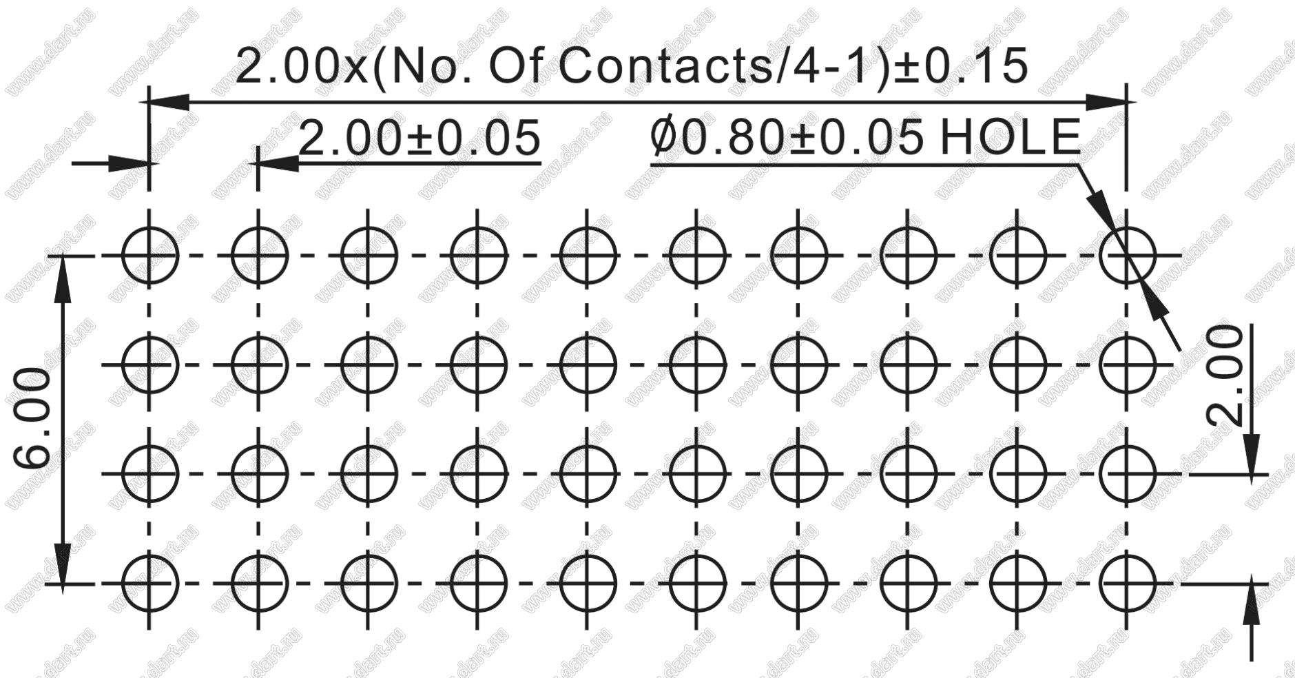Розетки прямые четырехрядные на плату для монтажа в отверстия (шаг 2,00 x 2,00 мм)