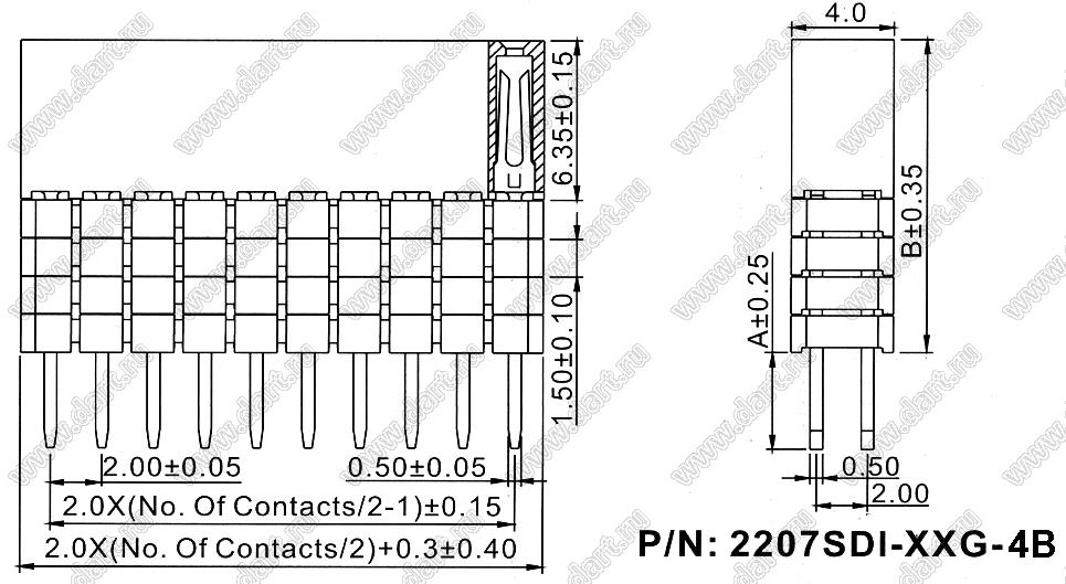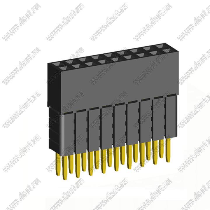 Розетки прямые двухрядные с увеличенным изолятором на плату для монтажа в отверстия (шаг 2,00 x 2,00 мм)