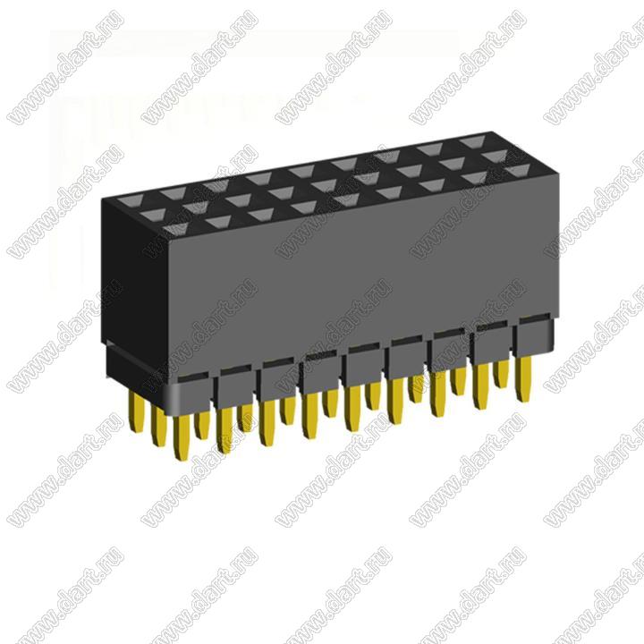Розетки прямые трехрядные с увеличенным изолятором на плату для монтажа в отверстия (шаг 2,00 x 2,00 мм)