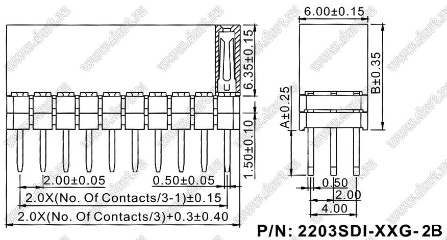Розетки прямые трехрядные с увеличенным изолятором на плату для монтажа в отверстия (шаг 2,00 x 2,00 мм)