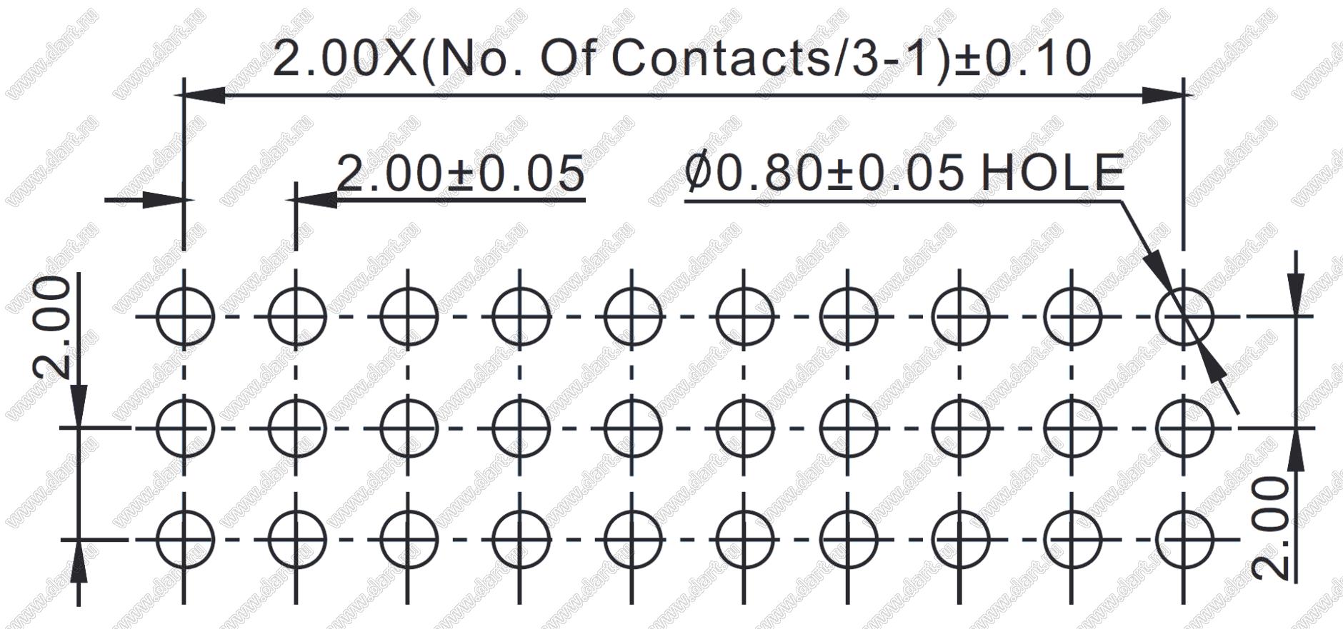 Розетки прямые трехрядные с увеличенным изолятором на плату для монтажа в отверстия (шаг 2,00 x 2,00 мм)